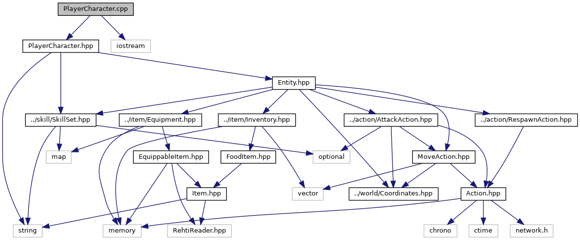 Include dependency graph for PlayerCharacter.cpp: